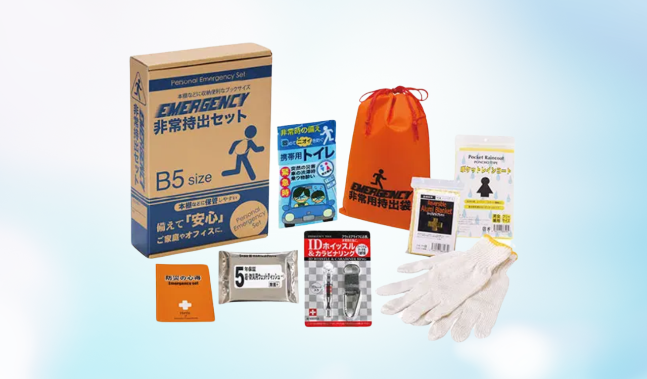 \9月は防災月間、家庭やオフィスに1セット/ コンパクト防災8点セット 災害時に必要な最小限の内容を携帯できるコンパクトな防災セット。 31%OFF!→→→【防災】で検索! |