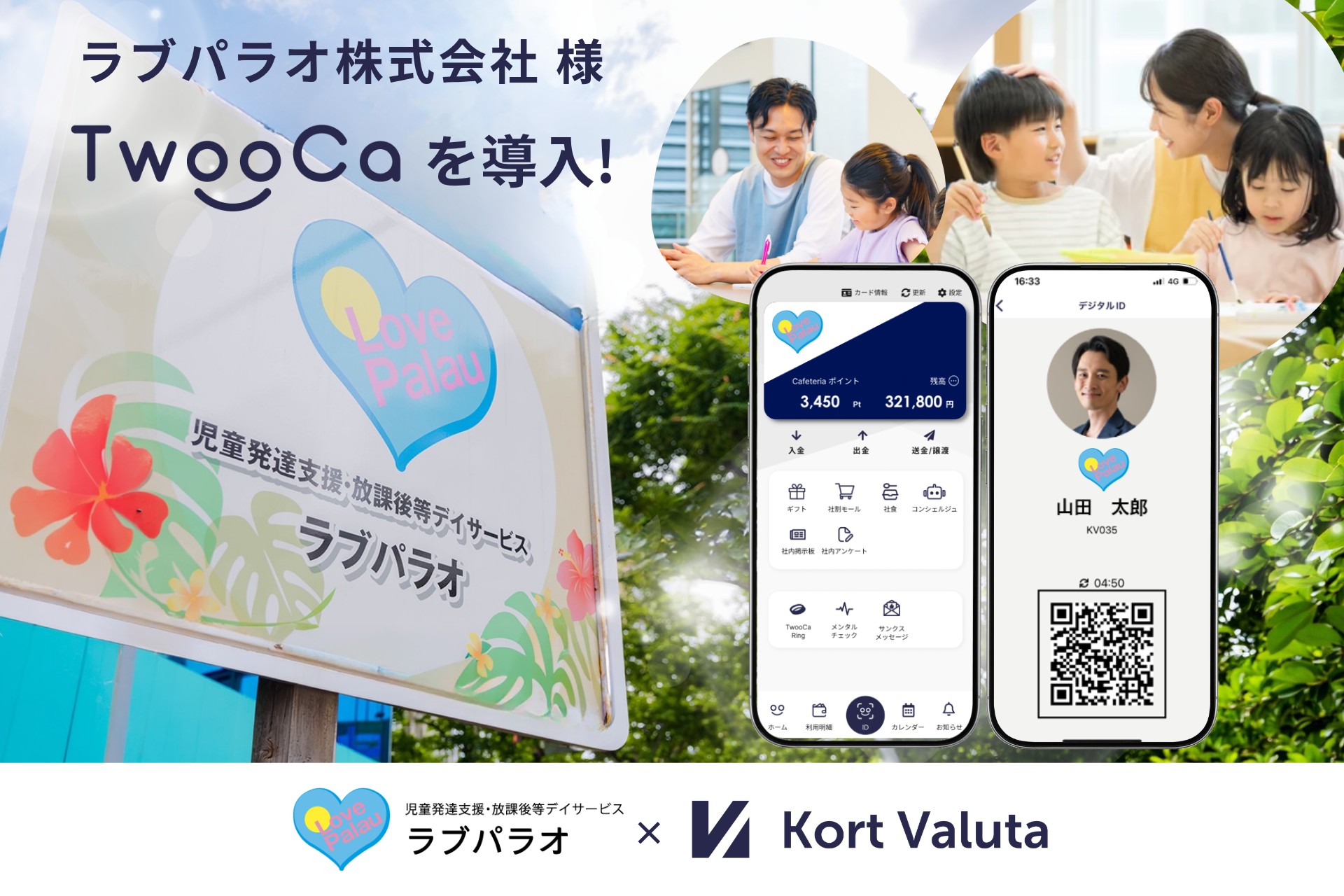 株式会社Kort Valuta(本社:東京都渋谷区、代表取締役:柴田秀樹、以下「当社」)は、児童発達支援、放課後等デイサービス、共同生活援助などを展開するラブパラオ株式会社(本社:大阪府東大阪市、代表取締役:宮里康和、以下「ラブパラオ」)が、職員のエンゲージメント向上および組織基盤の強化を目的として、次世代型ウォレット「TwooCa(ツウカ)」を導入したことをお知らせいたします。